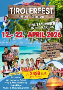 « Alle Veranstaltungen TIROLERFEST unter Palmen April 12 - April 22 « Narzissenfest Schlager Party » Zum Kalender hinzufügen Google Kalender iCalendar Outlook 365 Outlook Live Details Beginn: April 12 Ende: April 22
